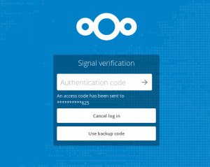 Two-factor authentication dialog on Nextcloud